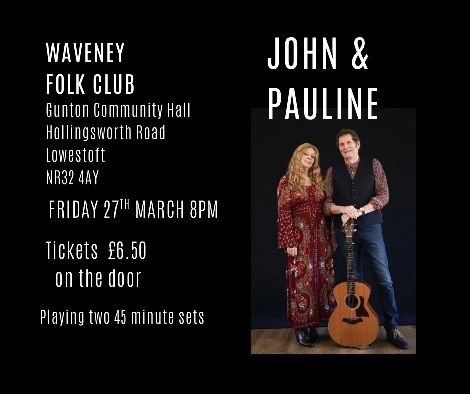 We will be playing 2 x 45 minute sets as the guests of Waveney Folk Club. Tickets £6.50 on the door.